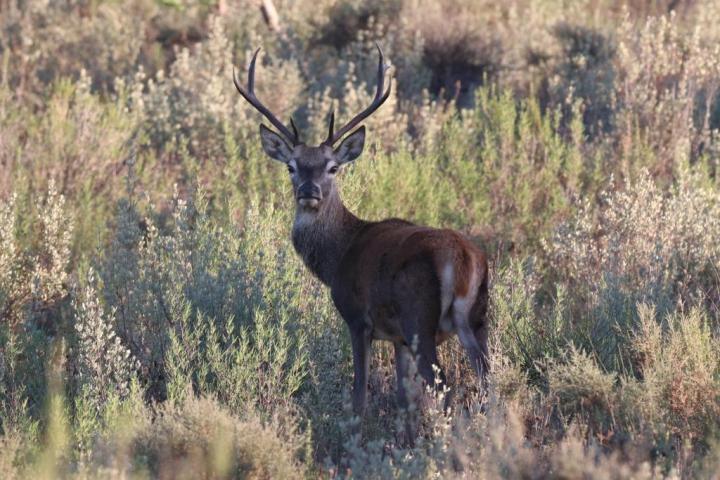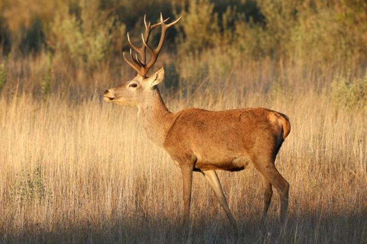 Ce cerf se déplace en soirée dans le Parc national de Donana (octobre 2022).