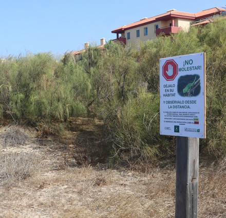 1 – la petite portion littorale entre Los Corrales de Rota et Rota : en se promenant ici, vous tomberez même sur une petite zone entourée de barrières en bois avec un petit panneau indiquant sa présence et invitant à le respecter (Voir la photo ci-dessous à gauche).