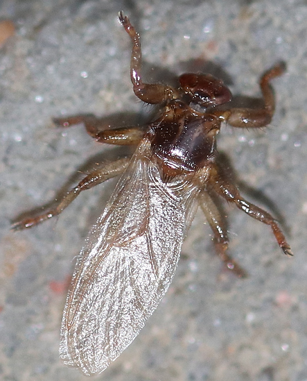 Ci-contre : le lipoptène du cerf ne pique pas les hommes, mais en octobre, ils peuvent être très nombreux. Ils circulent sous les vêtements et viennent se cacher dans les cheveux. Pas très agréable mais pas insurmontable du tout !