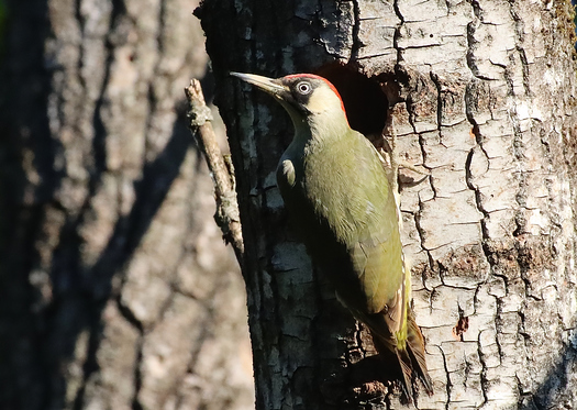 Ci-contre : Pic vert femelle devant sa loge.