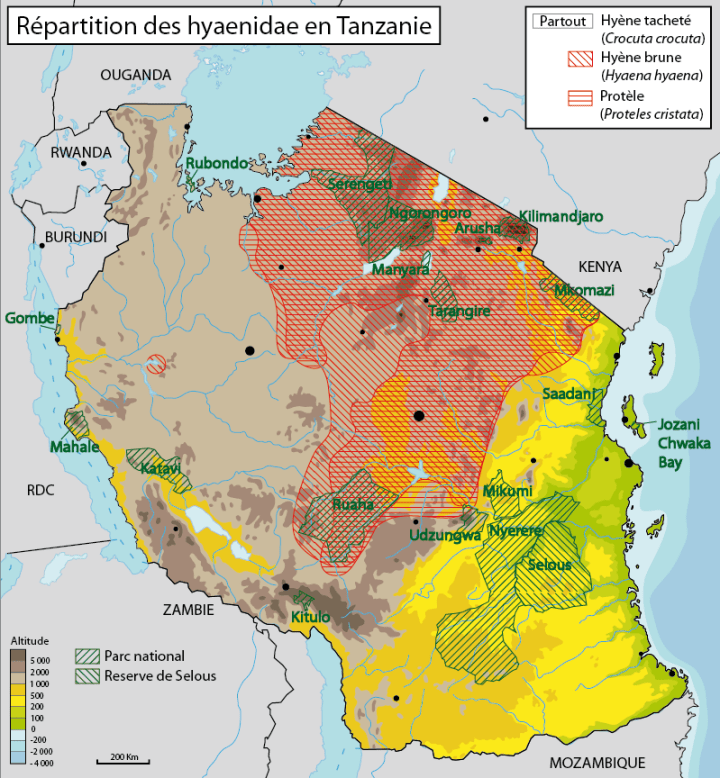 – 2 : Serengeti et Ruaha : on compte 2 hyènes par km2 dans les zones de savane.